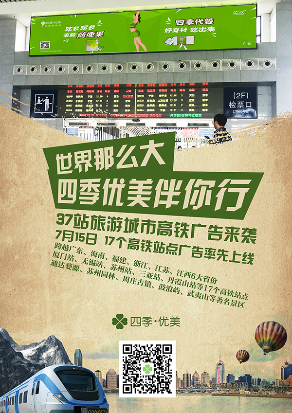 Since July 15, 2018, Sijiyoumei’s ads have been launched in 17 high-speed rail sites, covering six provinces of Guangdong, Hainan, Fujian, Jiangsu, Jiangxi and Zhejiang.