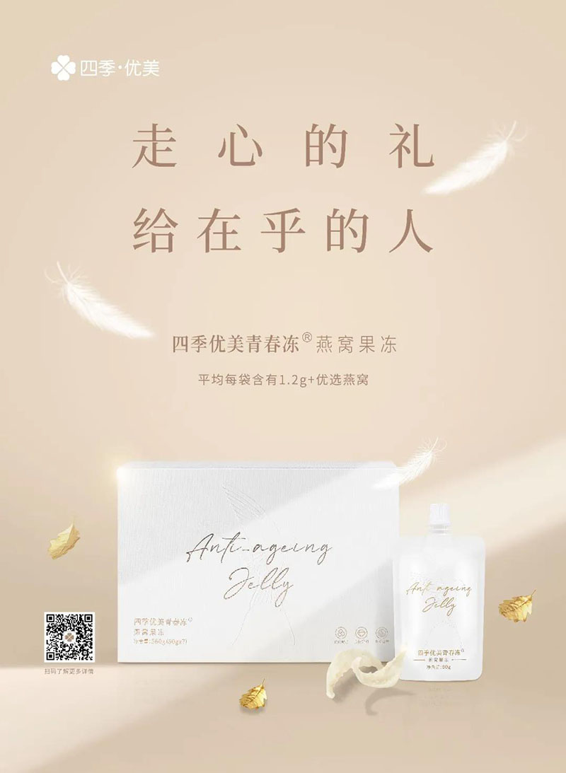 “走心的禮,給在乎的人”,是對四季優美青春凍®燕窩果凍“禮物”屬性的深度開發。燕窩作為公認的食養上品,往往占據高端禮品圈的C位,體現著送禮之人“禮重情更重”的豐厚意蘊。正所謂“器以載道,物以傳情”,挑選一份心意之禮的背后,是對傳統人際良序的尊崇,也是對人情禮俗的傳承發揚。不失燕窩的貴重,又具“輕養”風的四季優美青春凍®燕窩果凍,也更加契合現代人的消費口味——送禮,當然要送對方的“心頭好”。