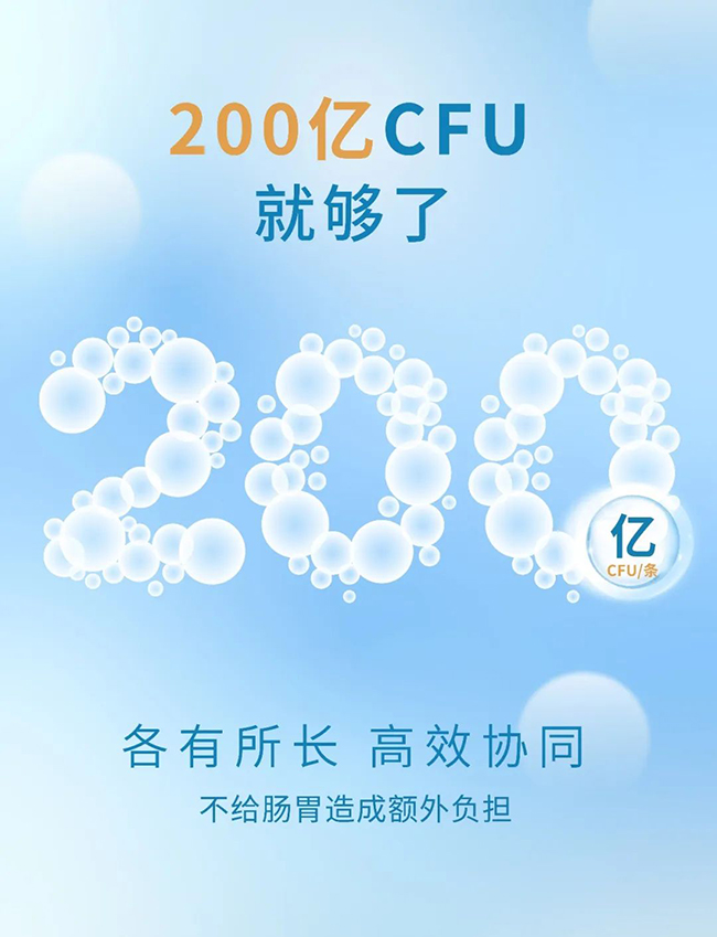 在一款益生菌產品中,是不是加入的菌株品種越多越好?是不是加入的數量越多越好?四季優美養顧問研發團隊通過近萬組實驗數據分析得出結論:嗜酸乳桿菌NCFM、乳雙歧桿菌B420、乳雙歧桿菌Bi-07、副干酪乳桿菌Lpc-37、乳雙歧桿菌Bl-04這五個菌株通過科學搭配,并在合適的位點進行靶向定殖,即可產生高效協同的作用。每條養顧問200億CFU的添加量,通過合理頻次的食用,即可實現胃腸道的全覆蓋,逐步建立健康的腸道微生態,同時不會對腸道造成額外的負擔。