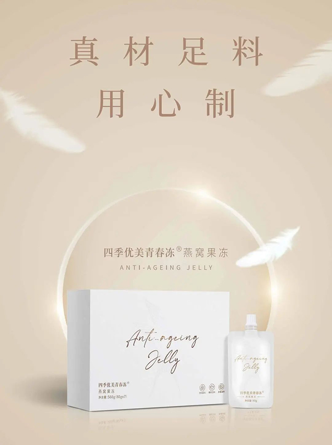 每一袋四季優(yōu)美青春凍燕窩果凍所含干燕窩更是多達1.2g,同時,魚膠原蛋白肽、葛根粉、奇亞籽、水蘇糖、低聚木糖、低聚果糖等多種珍貴原料的加入,使四季優(yōu)美青春凍在營養(yǎng)價值、飽腹感及產(chǎn)品綜合體驗方面,都實現(xiàn)了顯著的提升,每天一袋,即可滿足日常滋補所需,滿滿的真材實料,口感更好吃,內(nèi)涵更健康。